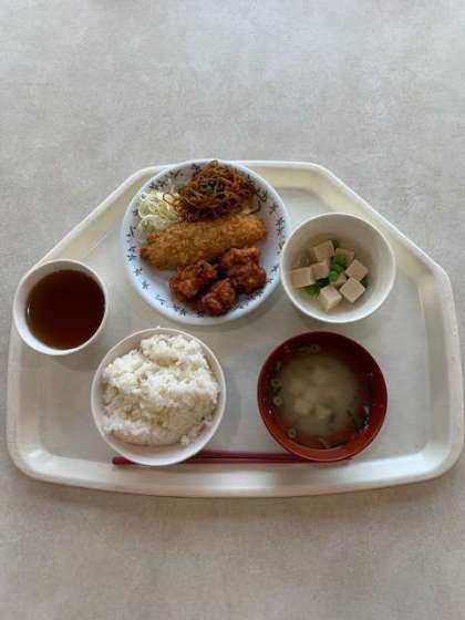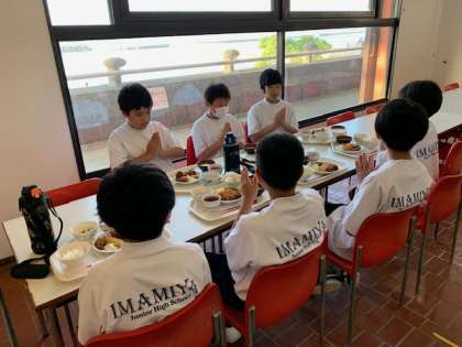 18時から夕飯でした。上の画像が今日のメニューです。ご飯やお味噌汁のおかわりができ、多くの生徒がおかわりしていました。