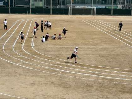 リレーでは、バトンパスを上手にして、次のメンバーにつないでいました。一生懸命走って、みんなのために頑張っていました。
