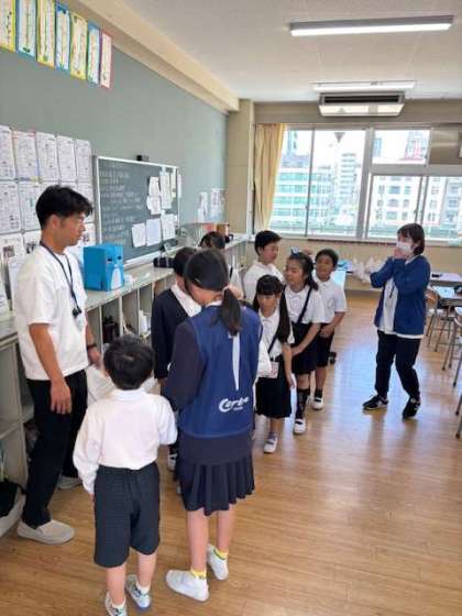 たてわり班の活動が始まりました。今日の4時間目、6年生のリーダー、副リーダーが中心となってメンバーの紹介や、各班で1年生と6年生、2年生と4年生、3年生と5年生のペアの確認をしました。最後に班で楽しいゲームをしていました。それぞれの班のリーダー、副リーダーが活躍していました。