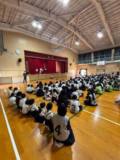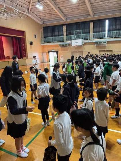 今年度も木曜日の朝に児童集会を行います。今日はたてわり班で並んで、「ジャンケンゲーム」をしました。6年生のリーダーとジャンケンをして勝てば、リーダーの後ろに並んでいきます。班のメンバーの友だちはリーダーに勝つと、とても嬉しそうでした。どの班も仲良く活動することができました。