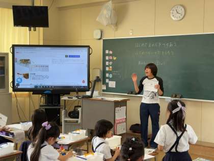 絵の具を使うときにはどのようにして筆を使うのか、筆洗は目的によって使う場所が変わること、パレットの使い方などを学びました。