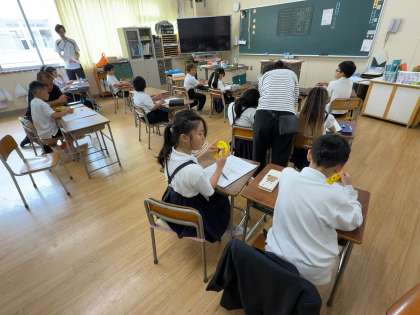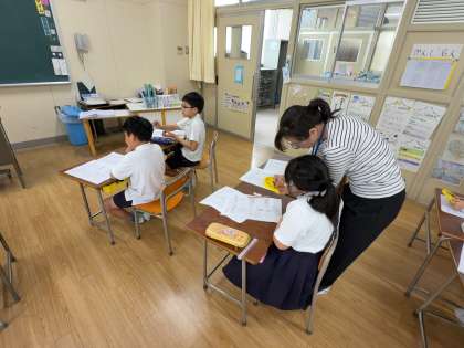家を出た時刻から、○○分経ったらおじいさんのうちにつきました。おじいさんの家についた時刻は何時でしょうといったような問題に取り組みました。