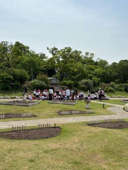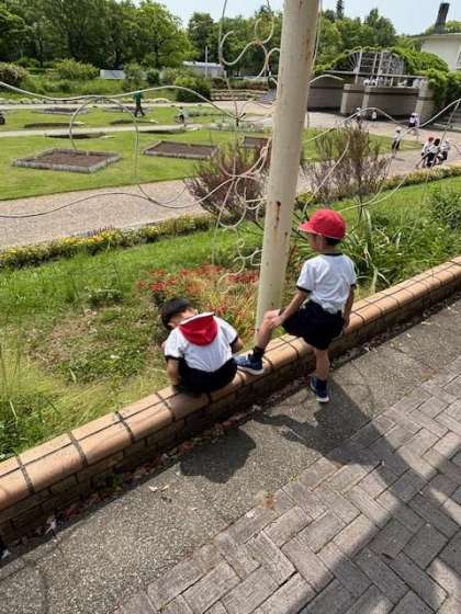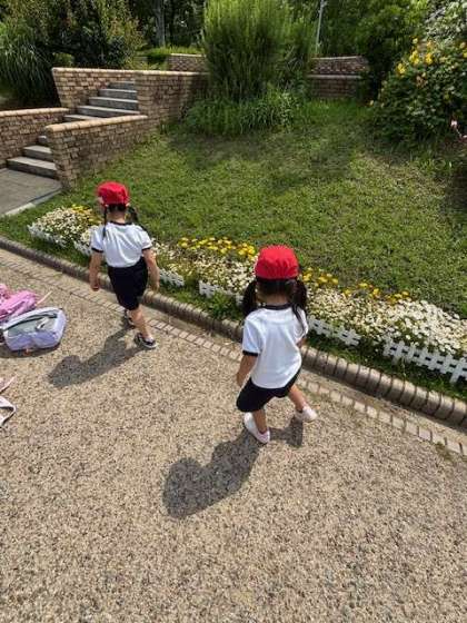 きれいな花を観察したり、チョウチョを追いかけたりしていました。緑に囲まれた中で、楽しそうに過ごしています。