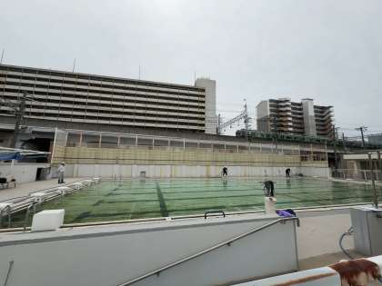 6月23日からのプール水泳に向けて、プールの稼働床の点検が行われました。