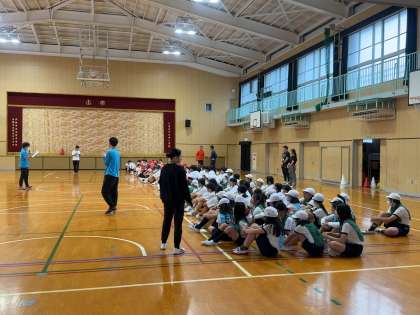 6月3日の1時間目は、あいにくの天気でしたので、体育館で5・6・9年合同練習をしています。