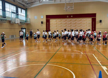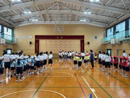6月3日の3時間目は、3・4・8年で、主に台風の目の入場や退場の練習をしました。