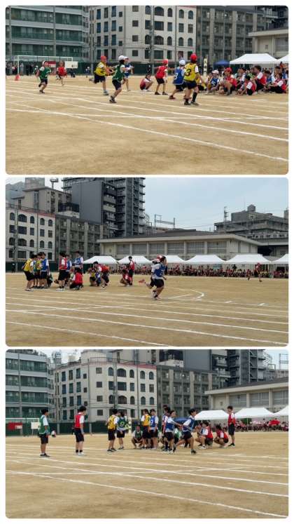 1〜9年生の全学年でバトンをつなぐ組対抗リレーです。