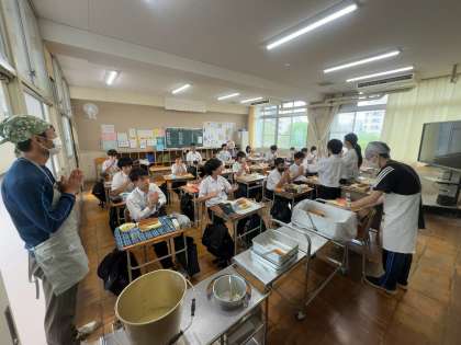 子どもたちにはサーモンフライが人気で、おかわりのじゃんけんは盛り上がっていました。
