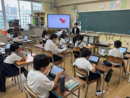 担任の先生の説明を聞きながら上手にスライドを作っていました。