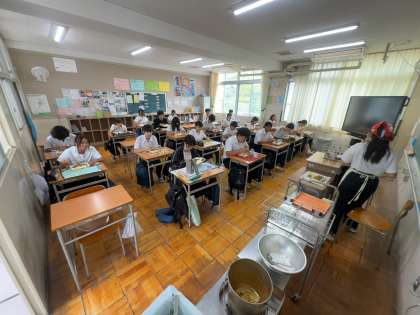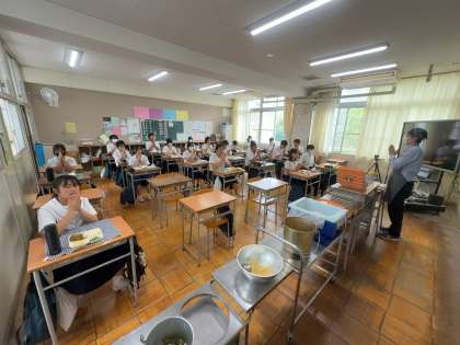 和風カレーは人気のメニューの一つで、子どもたちはごはんにたくさんかけておなか一杯に食べていました。また、和なしの缶詰も人気で、おかわりをたくさんしていました。