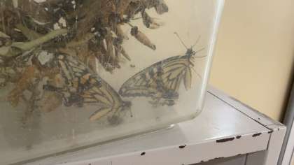 3年生で飼育しているアゲハチョウが、羽化しました。月曜日に1匹、この火曜日に2匹です。