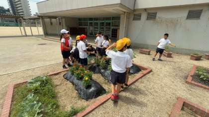 今日は2匹のアゲハチョウを学習園で自然に返しました。ふたを開けると元気よく旅立っていきました。
