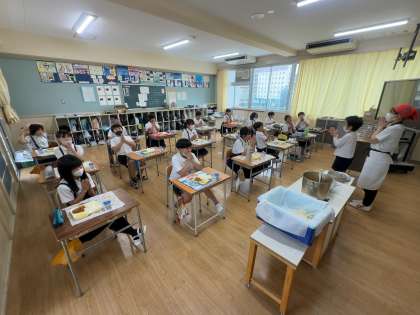 大阪市の給食では、 小麦アレルギーのある人も食べることができるように、米を粉にして作られる米粉 (上新粉)でとろみをつけています。