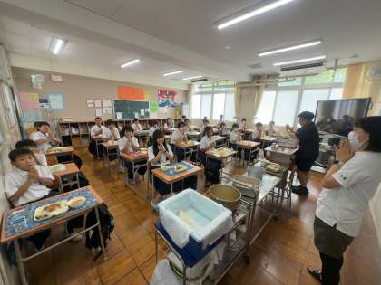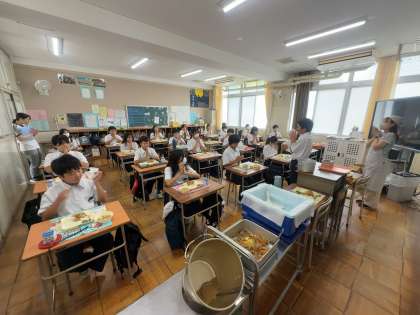 給食では、だし昆布やけずり節、煮干しなどからだしをとっています。
