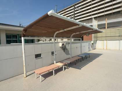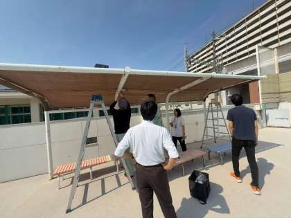 さぁ、完成です。ご覧のようにしっかりと日影ができて、とても涼しい場所ができました。
