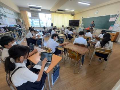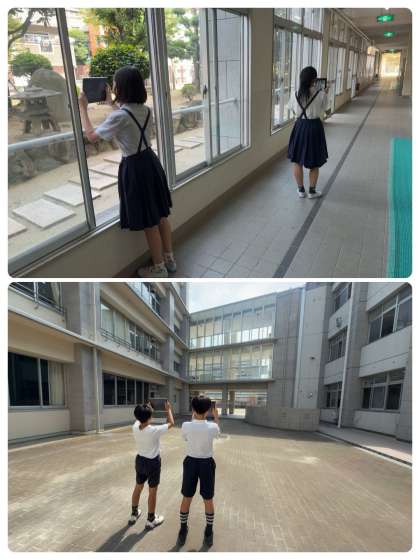 7月1日の1時間目は、学習者用端末で校内の風景を取りに行きました。
