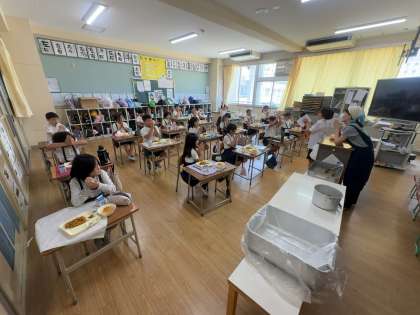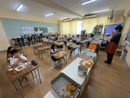 カレースパゲッティは人気のメニューの一つで、子どもたちはたくさんおかわりをしていました。また、今日は暑かったので、牛乳と発酵乳のおかわりじゃんけんは、とても白熱した戦いでした。