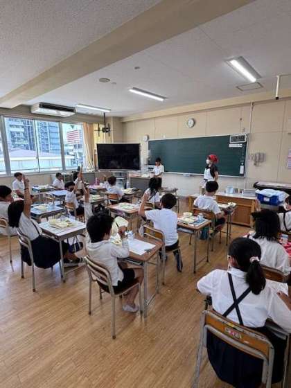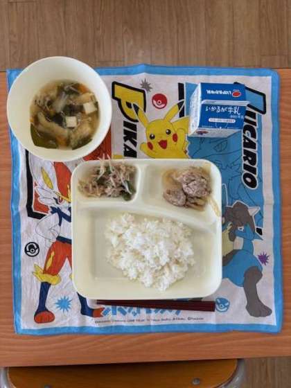 ごはんと豚肉のしょうが焼きは相性抜群で子ども達はしっかり給食を食べていました。
