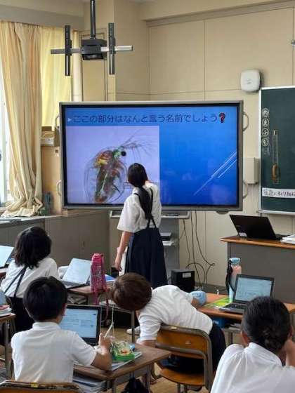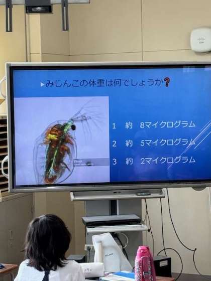 顕微鏡を使って、微生物を調べました。調べた微生物についてわかったことをプレゼンにしてまとめました。子ども達は友達の調べたことを熱心に聞き、友だちが作った微生物の問題には、手を挙げて答えていました。わかりやすいプレゼンを作り、とても上手に発表していました。