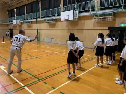 7月10日(木)3〜4限に、西成区キャリア教育推進事業の一環で、オリックス・バファローズの元プロ野球選手3名(吉田 直喜コーチ、塩崎 真コーチ、山本 和作コーチ)をお招きして、講話とスポーツ教室を開催しました。