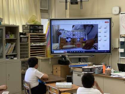 今日の児童朝会は、教頭先生からの絵本の読み聞かせでした。パンダの親子がお風呂屋さんに行くお話です。お風呂屋さんの中ではパンダの秘密があるようです。どんな秘密なのか、お子様に聞いてあげてくださいね。