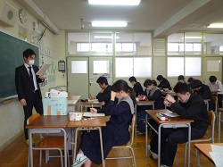 9年生最後の担任による授業のようすです。授業を受ける9年生のようすもとても素晴らしかったです。この3年間、心も体もとても立派になりました。中学校生活も残りわずかです。これまでの感謝の意を卒業式という晴れの舞台で見せてください。