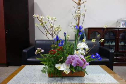 写真は、入学式で使った花を活け替えて校長室に置いたものです。
