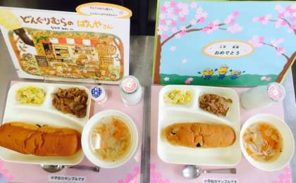 サワーソテーはコーンとキャベツを炒めて調味料で味を調え、ワインビネガーで優しい酸味に仕上げています。春キャベツのおいしさが味わえる献立です。