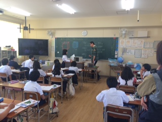 5年生の算数の学習のようすです。体積の求め方を前で説明していました。実際に教室で使っているレターボックスを例にして、子どもたちが体積を求めていました。どの学年でも、実際に実物を活用することで、理解がうながされることがあります。担任は、子どもたちが少しでも、「わかった!!」と言えるような授業にするために、日々工夫をしています。