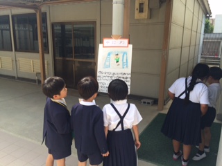 5月19日(木)、2年生が1年生の手をひいて、学校たんけんを行いました。職員室や保健室、給食室など、主に小学生が利用する所を巡りました。2年生が優しくリードする姿に1年間の成長を感じました。