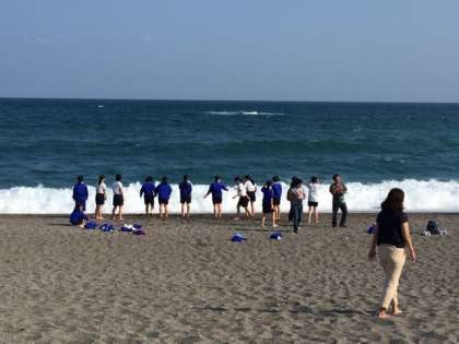 二日目の宿舎に到着し、桂浜に散策に出ました。
