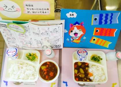今日は星形に型抜きされたラッキーにんじんも入っています。給食の時間を楽しく過ごしてもらえたらうれしく思います。