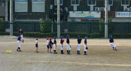 昨日、野球部の練習で、小学生と中学生がわかる様子が見えましたので、さっそく撮影してみました。仲良く一緒に練習しています。