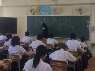 写真は、9年生で理科の学習をしている中尾さんのようすです。8年生の時に学習した元素記号を振り返り、原子の構造について話しをしていきました。今日が初めての授業ということもあり、緊張しているようすが見てとれました。 残り3週間、生徒たちからたくさんのことを学び取ってほしいと思います。頑張ろう、教育実習生の2人。