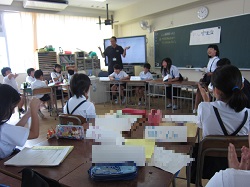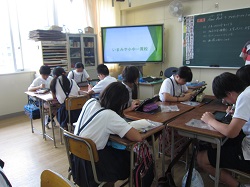 6月4日(土)、小学校では土曜授業として学習参観と林間保護者説明会を行いました。写真は6年生と5年生の学習参観のようすです。タブレットや電子黒板を活用して、学習をしている子どもたちのようすを見ていただきました。子どもたちもいきいきとした表情で学習に取り組んでいました。