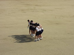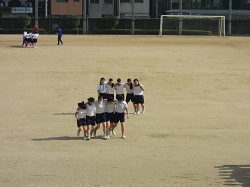 6月6日(月)の朝のようすです。数グループの生徒たちが体操服に着替え、運動場で肩を組み合っていました。来週行われる体育祭の競技の練習をしていました。有志による10人11脚の練習で、朝早くから集まっていました。なかなか息が合わず、スピードを出せずにいましたが、互いに声を出し合い協力するする姿が見られました。本番ではどのグループが1番にテープを切ることができるのか、楽しみです。