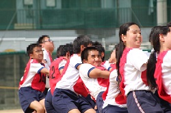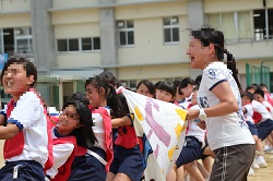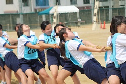 綱引きでは生徒たちだけでなく、先生たちも声を張り、力いっぱい応援をしていました。
