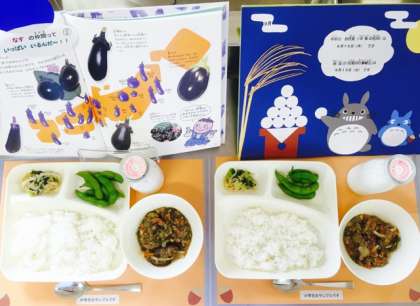 麻婆ナスはひき肉と野菜をたっぷりと使い、豆板醤を加えて仕上げています。ご飯によく合う献立です。