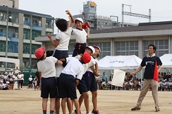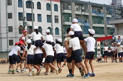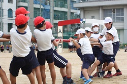 高学年の競技のようすです。騎馬戦の一騎打ちは大変盛りあがりました。棒引きでは、互いに一歩も引かない姿が印象に残りました。