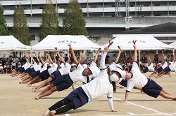 高学年の団体演技です。プログラムの最後を飾りました。今年はよさこいソーラン。全身を大きく動かして、表現することができました。