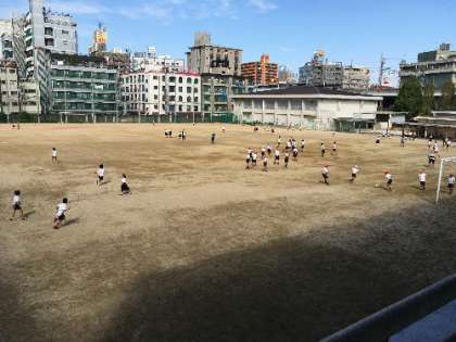 今日の昼休みは、子どもたちは大きな運動場で、思い切り走りまわっています。