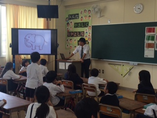 2年生の英語の学習のようすです。本校では低学年でも英語の学習を行っています。今回はいろんな色を英語で言っていきました。