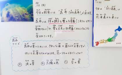 ソーキ汁は豚ばら肉を丁寧に下茹でして、余分な脂や灰汁をとりのぞき、食べやすく仕上げています。削り節でとった出し汁に切り昆布をたっぷり加えてから味付けしました。旨味たっぷりの汁物献立です。