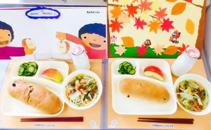 肉うどんは、野菜のたっぷり入ったうどんに、甘辛く炒めた牛肉を入れています。子どもたちにも大人気の献立です。