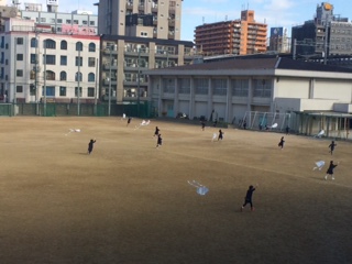 1年生の生活科の学習のようすです。自分たちで作ったたこを運動場に出て、あげました。子どもたちは思いっきり走り、たこを高くあげようと頑張っていました。広い運動場を元気に駆け回る姿が印象に残りました。