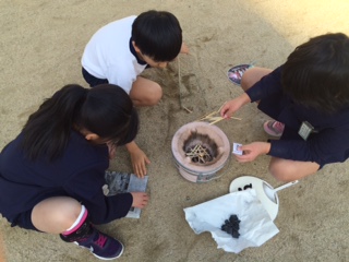3年生の社会科の学習のようすです。昔の道具と人びとのくらしについて学習をしています。今回は七輪を使って、もちを焼きました。実際に炭やマッチを使って、火をおこしました。中々、炭に火をつけることができず悪戦苦闘でしたが、たくさんの先生方のアドバイスを受け、無事に火をつけることができました。その後はもちを焼き、おいしくいただきました。