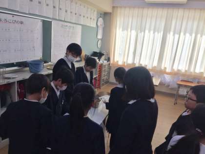 1年生から6年生の縦割りで教室に集まって一緒に給食を食べ。そのあとはもうすぐ卒業する6年生にメッセージを書いたり、みんなで遊んだりして楽しいひと時を過ごしました。