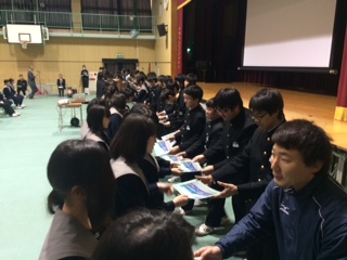 3月10日(金)、9年生送る会を行いました。7年生から、中学校3年間の思い出の写真をまとめた下敷きのプレゼントがありました。また、部活動の仲間、お世話になった教職員から心温まるメッセージビデオも見ました。