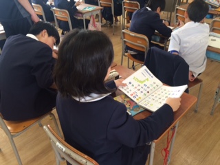 6年生の算数の学習のようすです。線対称・点対称の図形について学習を進めてきました。今日は、都道府県の旗を図形とみなし、線対称な旗・点対称な旗と分別いしていきました。身の回りにあるものでも、線対称な図形・点対称な図形があります。一度、意識してみると面白いと思います。
