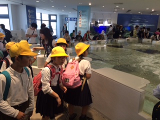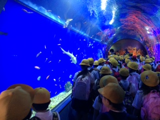 5月11日(木)、3・4年生が海遊館に遠足に行きました。中ではいろいろな動物を見て回りました。人気があった動物はペンギンとマンボウ、そしてジンベイザメでした。その後、海遊館の近くにある日本で2番目に低い山である天保山に登り(標高4.53m)、なかよくお弁当を食べました。天気にも恵まれ、楽しい遠足となりました。